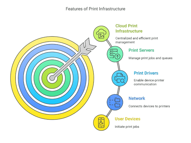 A cloud print infrastructure relieves the IT effort, improves accessibility to the end-user, and in many cases creates self-service printing. In short, the end-user can find and connect to a printer, and even troubleshoot, without engaging any technical resources.