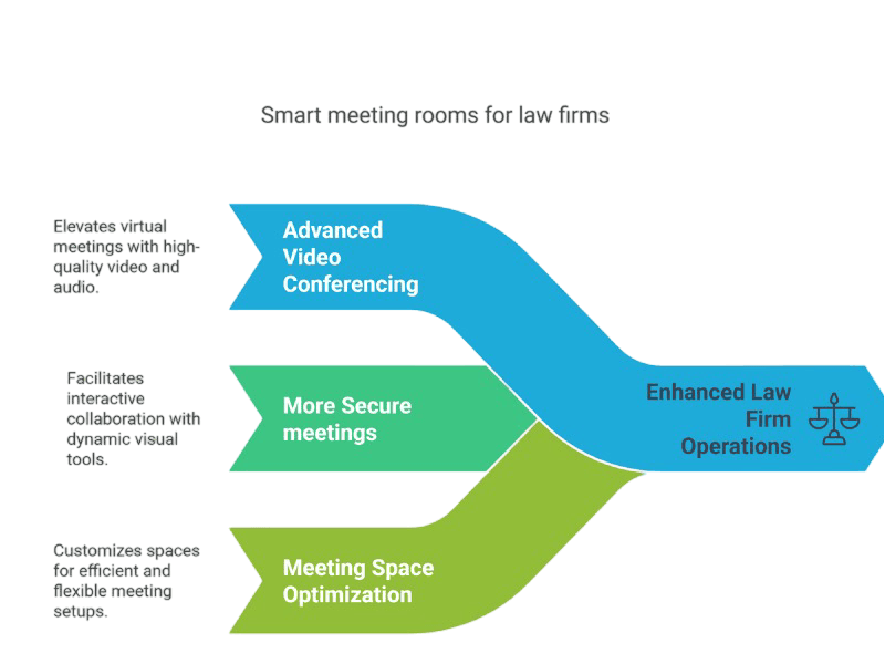 Smart rooms also offer the flexibility to configure meeting spaces based on operational, employee, and client needs for firms that are looking for more efficient use of workspaces or reducing their real estate footprint as more employees work remotely.